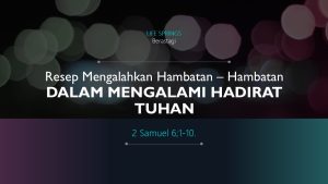 RESEP MENGALAHKAN HAMBATAN – HAMBATAN DALAM MENGALAMI HADIRAT TUHAN (2 Sam 6;1-10).