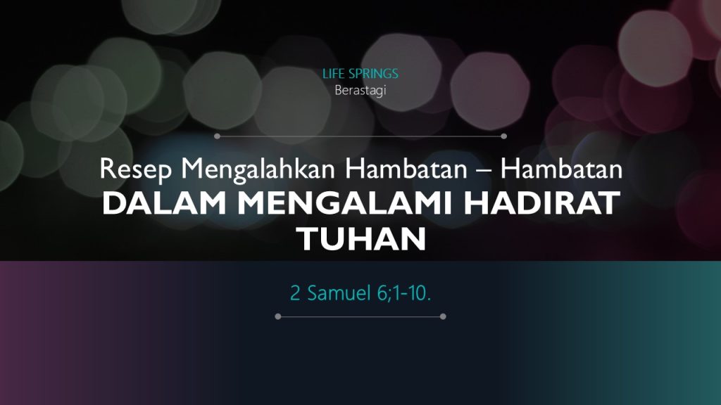 - Ayat Alkitab yang kita baca ini memberitahukan kepada kita bagaimana Daud diperhadapkan dengan hambatan – hambatan dalam mengalami kehadiran Allah. Dikisahkan bahwa setelah Daud menjadi raja atas seluruh Israel, maka hal pertama yang dikerjakan oleh Daud adalah memindahkan Tabut Allah dari Kyirbat – Yearim ke Yerusalem yang juga disebut dengan Kota Daud (2 sam 6;1-5).