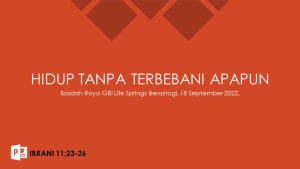 HIDUP TANPA TERBEBANI OLEH APAPUN (IBR 11;23-26).